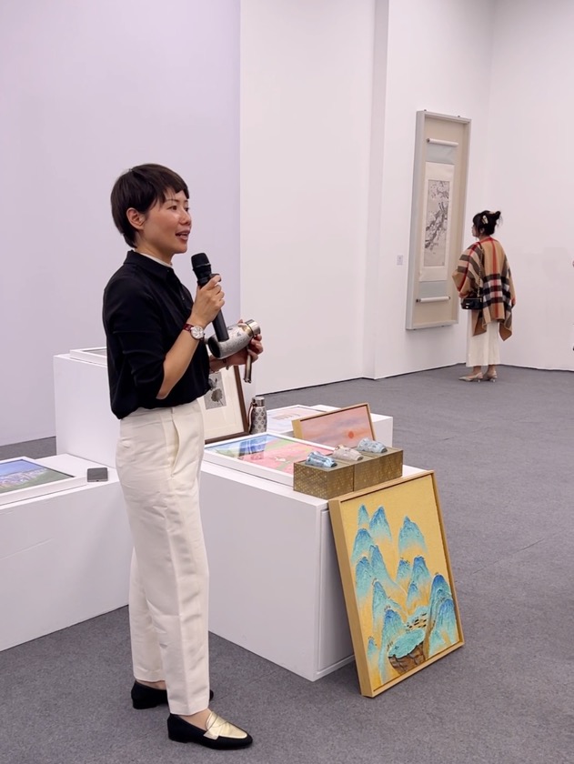 值得一提的是,本次展覽活動特加入了公益環(huán)節(jié)。金羽翼公益基金會也特選送了多幅孤獨(dú)癥青少年的「詠春」主題畫作,在現(xiàn)場展出、與大師作品形成對話。同時,三位孤獨(dú)癥青少年來到展覽現(xiàn)場,他們臨摹的大師作品栩栩如生。金羽翼基金會理事長張軍茹也特別表達(dá)了,希望在公益領(lǐng)域能以文化藝術(shù)為觸角,讓更多的有特殊需求的青少年學(xué)有多長、走向更廣闊的舞臺,同時藉助藝術(shù)大師的精湛造詣和影響力,促進(jìn)全社會對這一群體的關(guān)注與了解。記者在現(xiàn)場還看到,由京鹿鹿品牌方結(jié)合孤獨(dú)癥孩子的畫作制作而成的鈦杯和鈦保溫杯格外引人關(guān)注,為有繪畫天賦的孤獨(dú)癥孩子打開了一個新的發(fā)展方向,很有意義。